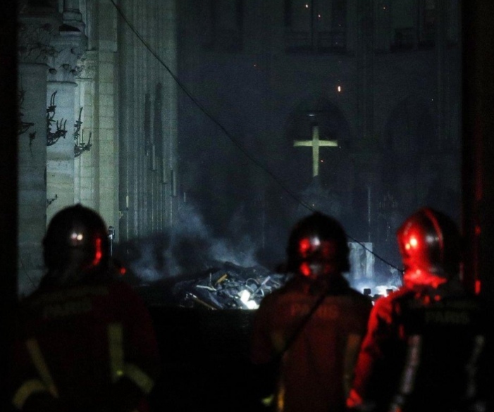 Qui n’a pas été saisi par cette image ? J’en ai été profondément bouleversée : cette croix en or, tout au fond, qui brille au milieu des décombres, la Vierge à ses pieds et l’autel restés intacts alors que tout s’est effondré autour, comment ne pas y voir un signe ?