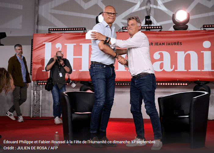 Hier était présent à la Fête de l’Oumma le lézard dégueulasse qui, de 2017 à 2020, a servi de Premier ministre au grouillement de masos qu’on nomme peuple français. Certains commentateurs se sont étonnés que le Premier secrétaire du Parti communiste, également présent, réserve à cet orvet géant un accueil bienveillant, lui qui est responsable de l’éborgnement de dizaines de Gilets jaunes et du confinement de millions de Français. Leur étonnement m’étonne. Car enfin, quelle est la gravité d’un éborgnement, quelle est la gravité d’un confinement pour un membre du parti-goulag ? Parti-goulag d’ailleurs fondé par un Lénine qui se revendiquait explicitement de la Révolution française… Comme Fabien Roussel. Comme Édouard Philippe. Et comme la totalité de l’offre politique française. Hormis son honnêteté, il n’y a donc rien d’étonnant dans cette connivence d’Édouard Philippe avec Fabien Roussel ; ni dans la sauvagerie qui, quel que soit le parti au pouvoir, et sous les formes les plus diverses, prend chaque jour des proportions plus monstrueuses, transformant la France en enfer. C’est qu’au-delà de leurs différences superficielles d’étiquettes politiques, les centristes, les communistes, les wokistes, les droitistes et, surtout, la quasi-totalité des Français s’abreuvent à la même source : les Lumières. C’est-à-dire la barbarie.